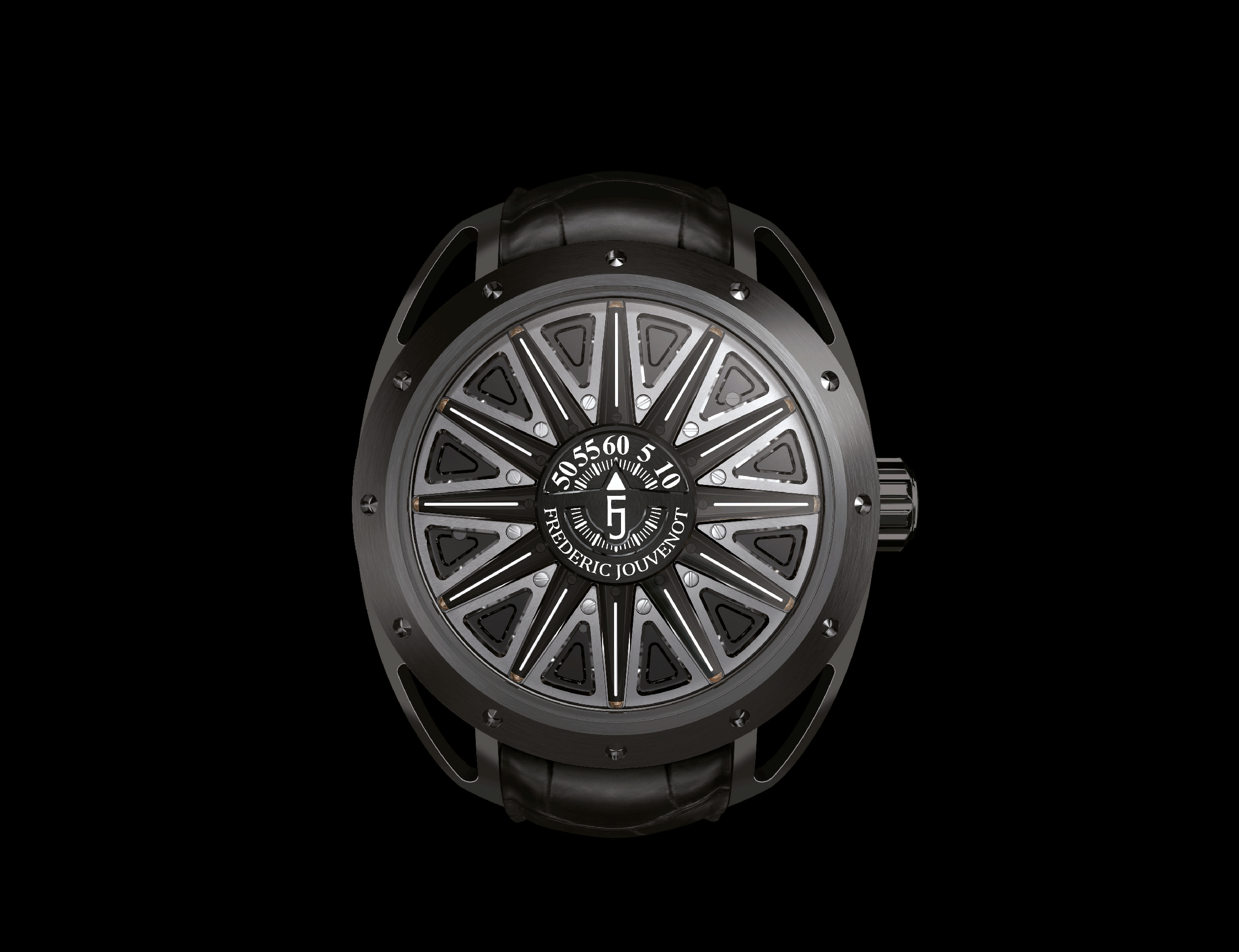 Simple to read yet fitted with a complex micro-mechanism, Frederic Jouvenot Solar Deity timepieces display two different faces, highlighting the day and night cycles. For the very first time in watchmaking history, a timepiece displays the time without conventional hands, numerals or disks.